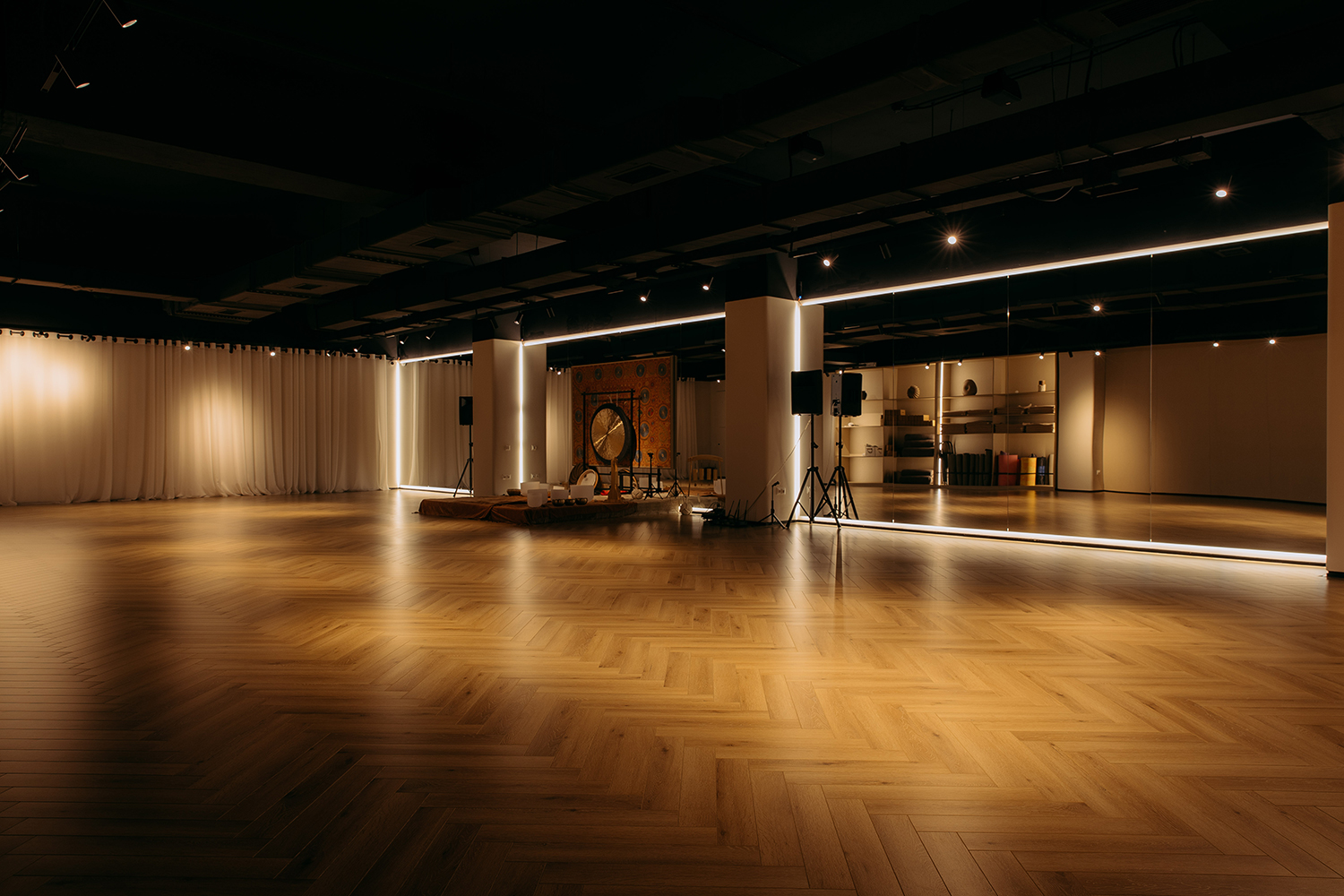 4 студии йоги в одном пространстве.